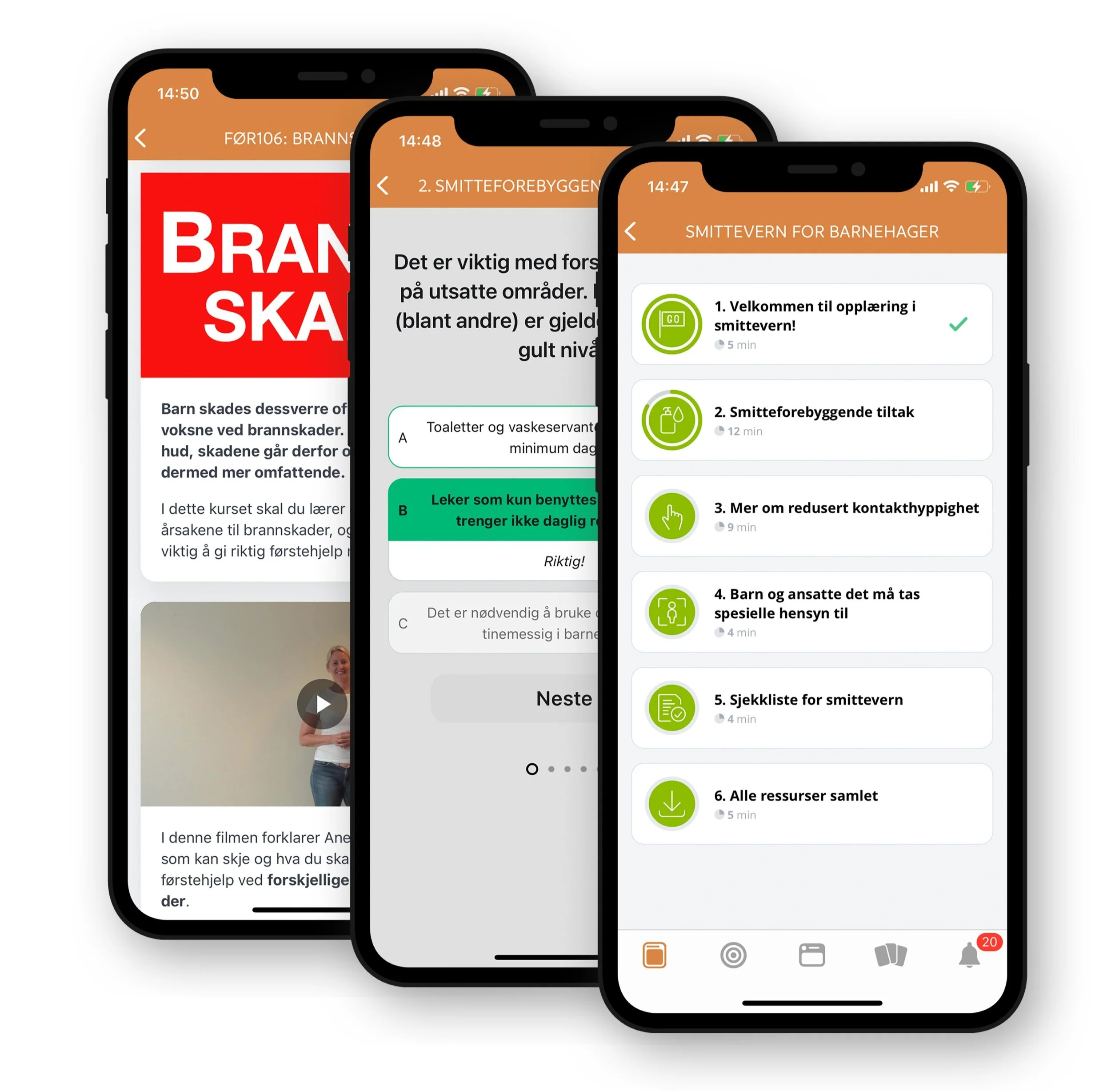 Vi tilbyr digitale opplæringskurs på app og web. Blant annet i førstehjelp og smittevern.